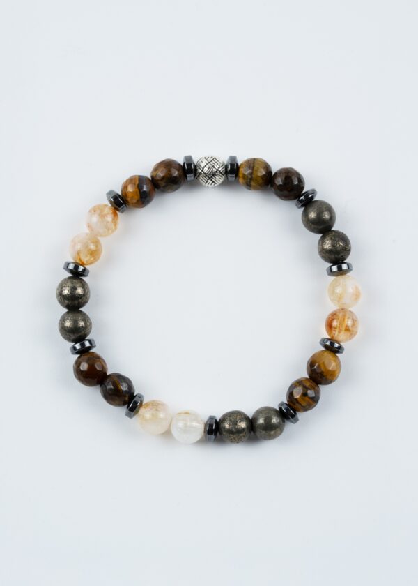 Kaplangözü Sitrin Pirit Hematit 8mm Gerçek Doğal Taş Unisex Bileklik | A Kalite
