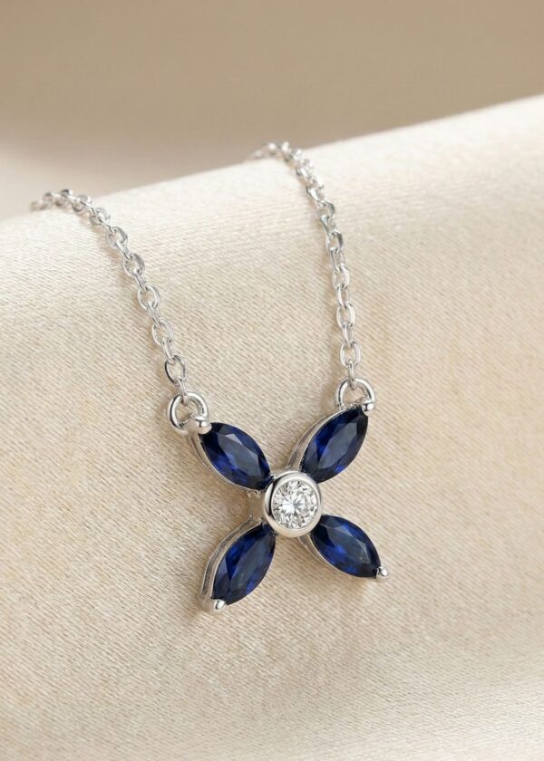 Yonca Model Safir Gümüş Kolye | Şans & Bilgelik Enerjili Doğal Taş Kolye | A Kalite