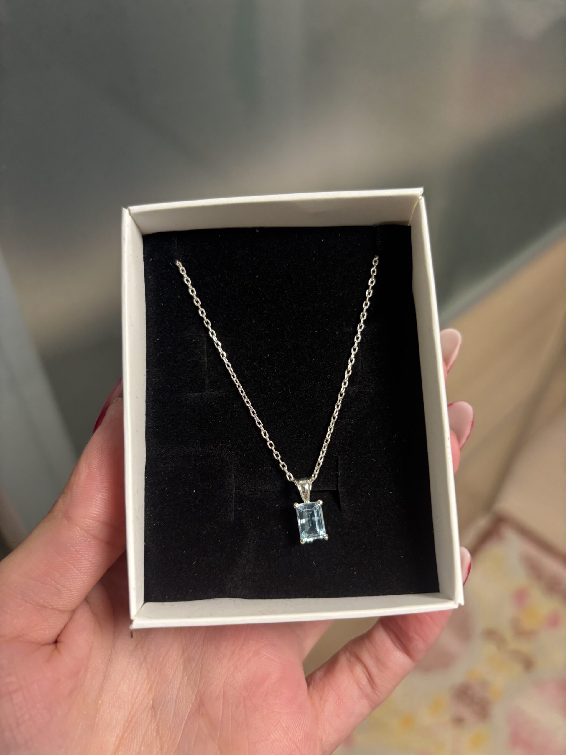 Blue Topaz Zümrüt Kesim 925 Gümüş Kolye için 2 değerlendirme