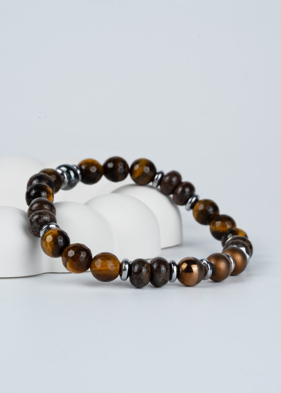 Koruyucu enerji ve kişisel güç sağlar. Stresi azaltır ve zihinsel odaklanmayı güçlendirir. Sıcak kahverengi tonları bileğe sofistike bir görünüm kazandırır.