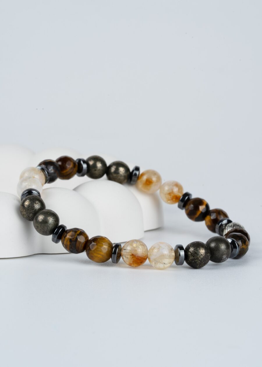 Kaplangözü Sitrin Pirit Hematit 8mm Gerçek Doğal Taş Unisex Bileklik | A Kalite