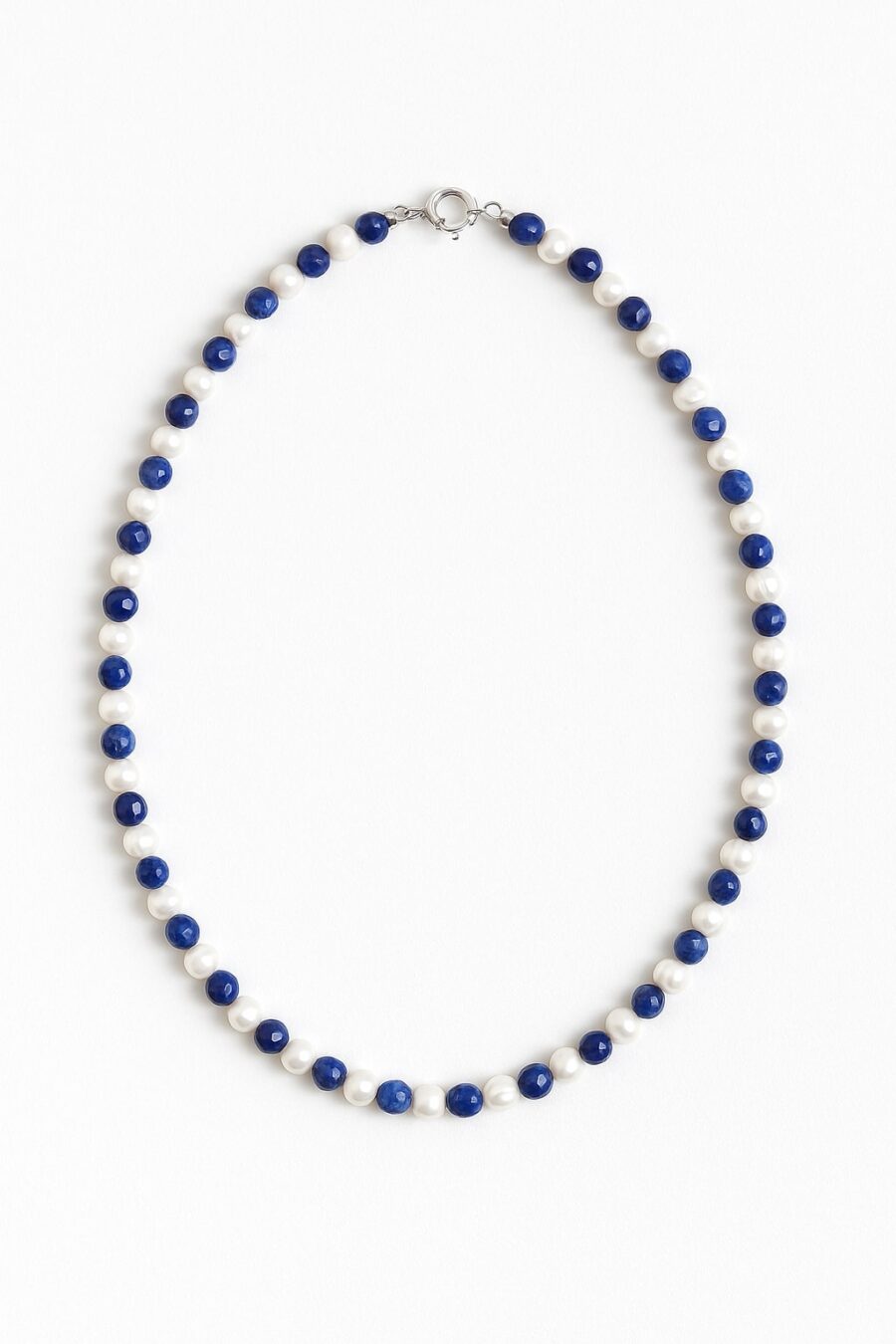 Kontrastın Gücü: Sodalit’in derin mavisi ile incinin parlak beyazının yarattığı çarpıcı kontrast, kolyeyi kıyafetlerinizin odak noktası yapar.